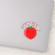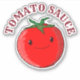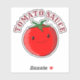 Sticker of a cute cartoon style red tomato and the words tomato sauce.