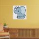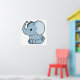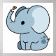 Adorable whimsical cartoon baby grey elephant with a tiny pink love heart over the top of her trunk.