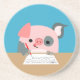 This little piglet is busy writing: his concentration and pleasure in doing so are obvious. Fully customisable and available on various products. Part of a serie of drawings featuring little pigs at study, sitting at a desk in front of a sheet of paper.