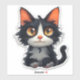 A charming black-and-white cartoon kitten sits adorably with wide golden eyes, a cute pink nose, and a small bell on its collar, radiating innocence and sweetnes