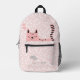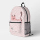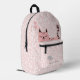 NewParkLane - Cute, personalised kids backpack, featuring a sweet sleeping pink cat cartoon, two hearts and a little grey mouse on the front pocket, with a soft blush pink background and a whimsical pattern of white polkadots, and a text template for your child's name. A great back to school gift for any young girl!