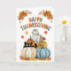Cute Cat and Retro Pumpkins Happy Thanksgiving Card