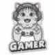 This captivating design features a gray and white kitten, overflowing with energy and cleanness. It is equipped with stylish black headphones and holds a joystick firmly, ready to dive into virtual adventure. His wide open eyes betray his total immersion and determination to overcome all challenges.