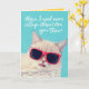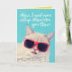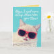 For cat lovers, a white cat wearing red sunglasses asking for catnip. Alexa seems to be ignoring the cat (which cats are usually famous for). Inside it says, "Forget Alexa! Just have a happy birthday!" Inside text is customisable.