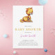 Cute minimalist baby shower invitation with a little kitty illustration great for a baby girl shower. Illustrated and designed by Patricia Alvarez.