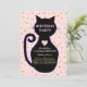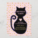 Cute cat and golden polka dots on pink background birthday Invitation. All texts and numbers are ready to be personalised.