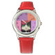 Cute Cat Black And White Tuxedo Illustration Red Watch