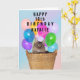 Cute cat with colourful balloons birthday card. Personalise with any birthday number and recipient's name. Inside says, "I hope your birthday is purrrrrfect!" Personalise the inside of the card with your own message if you choose. Inside text can be changed.