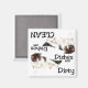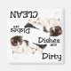 This magnet features a young cat laying down. Text reads: "Dishes are Dirty". Turn this magnet up-side-down and the same young cat is featured with this text: "Dishes are Clean". Great for that cat lover in your life! Looking to adopt a new best friend? Please visit petfinder.com to save the life of a shelter/rescue animal near you.