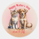 Cute Cat & Dog Watercolor Classic Round Sticker