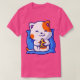 Cute Cat Eating Pizza on Pillow Cartoon T-Shirt