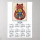 A cute calendar for 2026. Cat artwork with a folk art feel, depicting a momma cat and her family of cats in rainbow colors. Created by Scarebaby Design, all rights reserved.