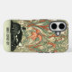 Cute Cat Floral Art Nouveau Green Red Custom Name Case-Mate iPhone Case