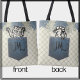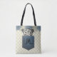 This is a really cute tote bag for the cat lover in your life. There is a mix of delicate plaid and blue florals in the background, and the cat happily popping out of the jean pocket seemingly sewn on the front. The pattern is the same on the back, but the cat is diving back into the pocket instead. You can personalize this tote bag initials (on the front and back) which would make this the perfect customized gift! Have fun with this one!