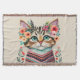 Cute Cat Floral Watercolor Throw Blanket