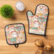 Cute Cat Home Patchwork Cosy Pastel Custom Name Oven Mitt & Pot Holder Set