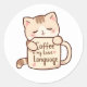 Cute Cat Hug Coffee Love Language Classic Round Sticker