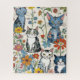 Cute Cat Illustrations with Wildflowers Floral Jigsaw Puzzle