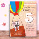 Cute Cat in Hot Air Balloon Glitter Girl Birthday Invitation Postcard