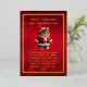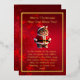 Our Cute Cat in Santa Hat Foil Card shows an adorable cat with big, round eyes in a Santa hat on a red background with snowflakes surrounded by a gold foil border, All gold foil text are fully customisable.