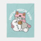 Cute Cat in Snow Gear with Snowman Art Fleece Blanket