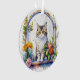 Whimsical watercolor ai art cat with adorable big eyes in a window full of pretty pink and orange flowers watercolor ai art. Personalised Christmas ornament.