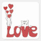 Cute Cat Love Typography Red Hearts | Valentine Square Sticker