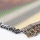 A quality printed throw has its advantages. This is a much finer weave throw than its loopier cousins, and though lighter, it is worth the investment for custom room accessorizing. The back is much prettier than the typical brown, and the fringe on the long sides very vivid, the selvage nicely done. Before photographing, I washed the throw in cold water, delicate, with a thicker woven throw the same size. On tumble dry low, this throw was dry in half the time as the other. This is a very practical quality if you use throws for furniture covers or to wrap up in frequently. The sleekness of the fabric makes it a great layer for accenting or protecting without the feeling of sitting on too much stuff. Perfect for napping or when you feel a light chill coming on. The color printing is beautiful and on this fabric, matched the design and color of my Photoshop image. This is an advantage for blending room fabrics and colors. The fringe on the short sides prints the colors from the design image and therefore varies from the side fringe. I streaked a white fractal line through the plaid pattern to give the illusion of weaving. This printed as crisp as an illusory thread, and put some white in the short side fringe, showing another advantage of print vs loomed- for artistic purposes, line lines, detail, and color integrity can be planned and preserved. My loomed throws have color limitations and more of a needlepoint texture. Print throws reproduce an exact image. The throw felt a little stiff straight out of the package, but this went away in the first delicate wash. Of course I searched the wash water for ink or bleeding and there was none.