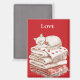 Cute sleeping cat on blankets red hearts love