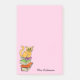 Cute Cat on Book Stack Teacher Name Pink 4 x 6 Post-it Notes