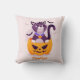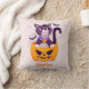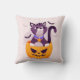 Cute Cat on Spooky Pumpkin and Halloween Bats Cushion