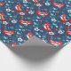 A cute folk art cat pattern in navy blue and red decorates this wrapping paper. Fun to wrap a gift for a cat lover! Designed for you by Blackberry Boulevard.