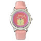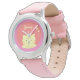 NewParkLane - Personalised Kids Watch, with a cute little yellow cat cartoon, against a pink and red background.