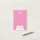 Simple, cute, cartoon white cat pink post-it-notes with custom name.