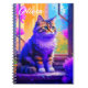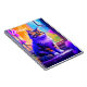 A cute grey and white kitty cat sitting in an open window looking out. Abstract flowers in yellow, pink and green.