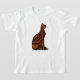 Cute cat sitting looking up with abstract motif. This t-shirt design features an adorable cat sitting gracefully, curious eyes looking upwards. The cat is illustrated with soft, playful lines, capturing its charming and innocent demeanour. Surrounding the cat is a vibrant abstract motif, blending dynamic shapes and colours that create a modern and artistic contrast to the cat's simplicity. The overall composition is perfect for cat lovers who appreciate a touch of creativity and flair in their wardrobe. This design brings a sense of warmth and whimsy, making it a delightful addition to any casual outfit.