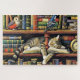 Cute Cat Slumber in the Book Nook Animal Jigsaw Puzzle