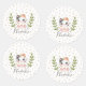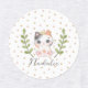 A cute child or baby iron on clothing labels with a Gender neutral soft watercolor illustration of a cat or kitten with a crown and leaves on a dotted patterned background.