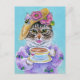 Cute Cat Tea Flowers Bee Valentine's Day postcard