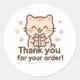 A kawaii thank-you sticker featuring an adorable cartoon cat holding a gift box, surrounded by pastel hearts and stars. The text reads “Thank you for your order!” in a bold, rounded font. Perfect for small business packaging, thank-you notes, and happy mail.