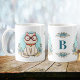 Cute Cat Wearing Glasses Charming Floral Monogram Coffee Mug