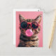 Cute cat with bubble gum, pink, Postcrossing Postcard