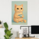 Cute Cat with Coffee Cup – Adorable Pastel Animal Poster