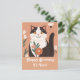 A cute cartoon cat with flowers on the peach background personalised greeting card.