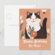 Cute Cat with Flowers Happy Birthday Personalised Holiday Postcard