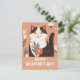 A cute cartoon cat with flowers on the peach background personalised greeting card.