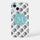 Cute cat with glasses pattern custom monogram iPhone 15 Case. Funny animal design. Personalise with own initial and pet photo.