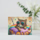 A funny cute cat rides on an inflatable glazed doughnut floatie AI generated art