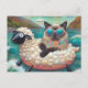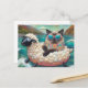 Cute Cat With on Sheep Floatie in Mountain Lake Postcard