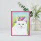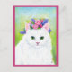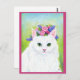 Cute Cat with Spring Flowers Hat pink postcard